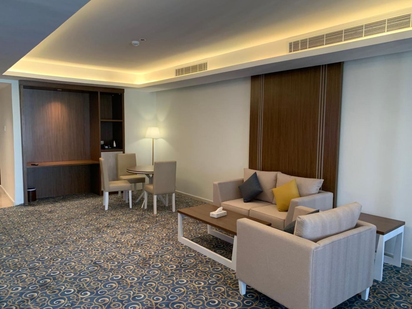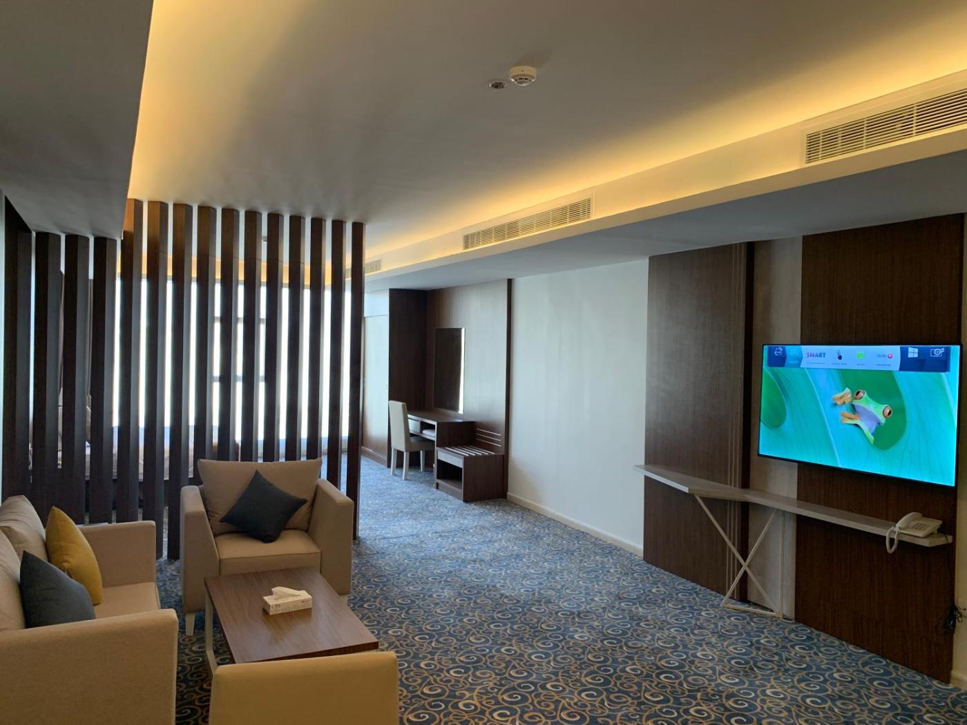 Junior Suite. Boasting a private entrance, this air-conditioned suite comes with 1 living room, 1 separate bedroom and 1 bathroom with a walk-in shower and a bidet. The suites kitchenette, which has a refrigerator, is available for cooking and storing food. The spacious suite features a flat-screen TV with satellite channels, a seating area, a wardrobe, a tiled floor as well as city views. The unit has 2 beds. ;