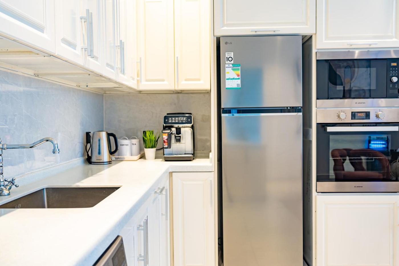 Three-Bedroom Apartment with Sea View. This spacious apartment comes with 2 living rooms, 3 separate bedrooms and 3 bathrooms with a shower and free toiletries. Guests will find a stovetop, a refrigerator, kitchenware and an oven in the well-equipped kitchen. The apartment also includes a barbecue. The air-conditioned apartment features a flat-screen TV, a washing machine, a tea and coffee maker, a dining area as well as sea views. The unit has 5 beds.