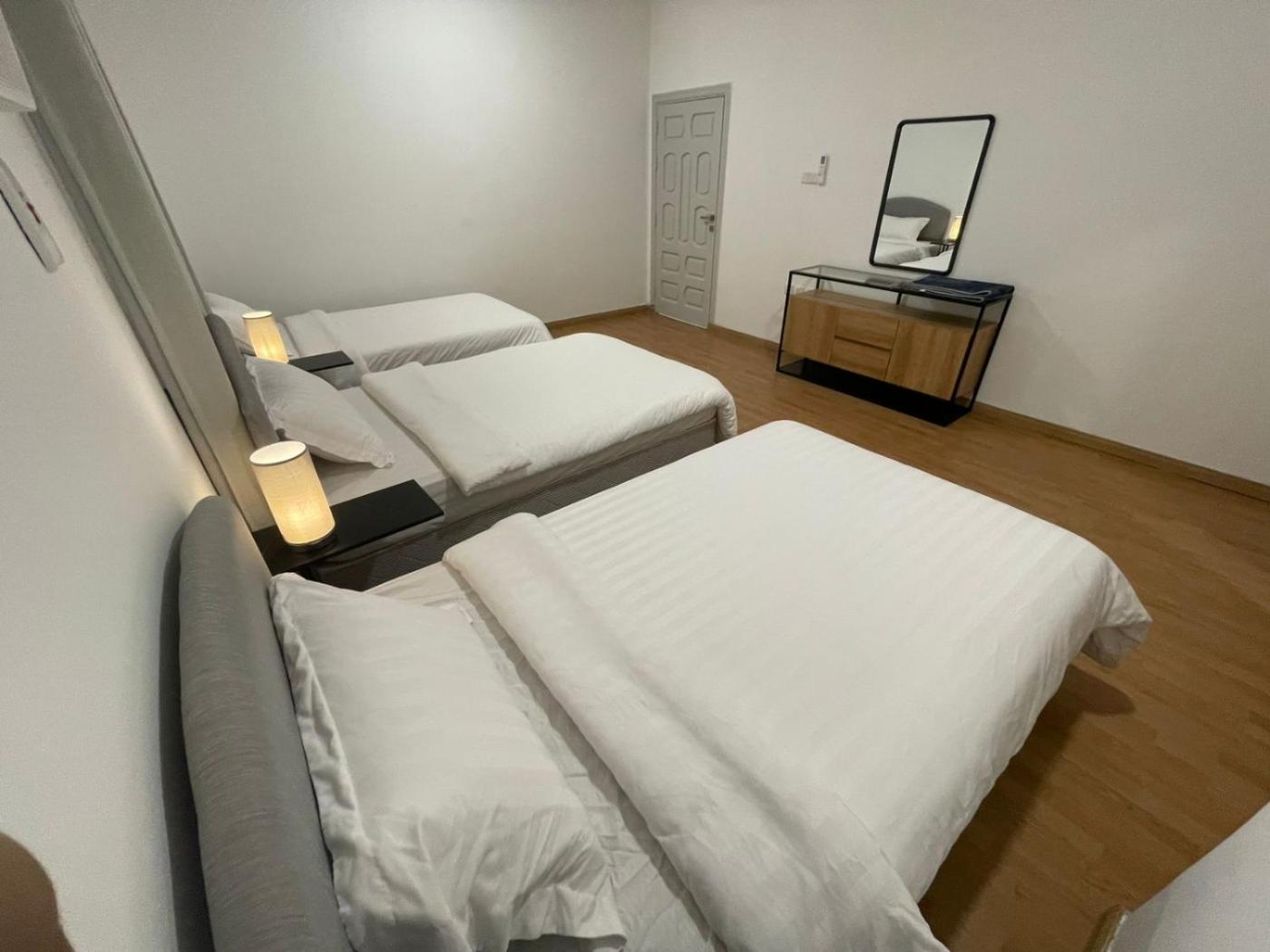 Three-Bedroom Apartment. This spacious apartment comes with 1 living room, 3 separate bedrooms and 2 bathrooms with a walk-in shower and a bidet. The well-fitted kitchen features a refrigerator, kitchenware, an oven and a microwave. This apartment is air-conditioned and has a seating area with a flat-screen TV, a washing machine, a wardrobe, an electric kettle, as well as a sofa. The unit has 7 beds.