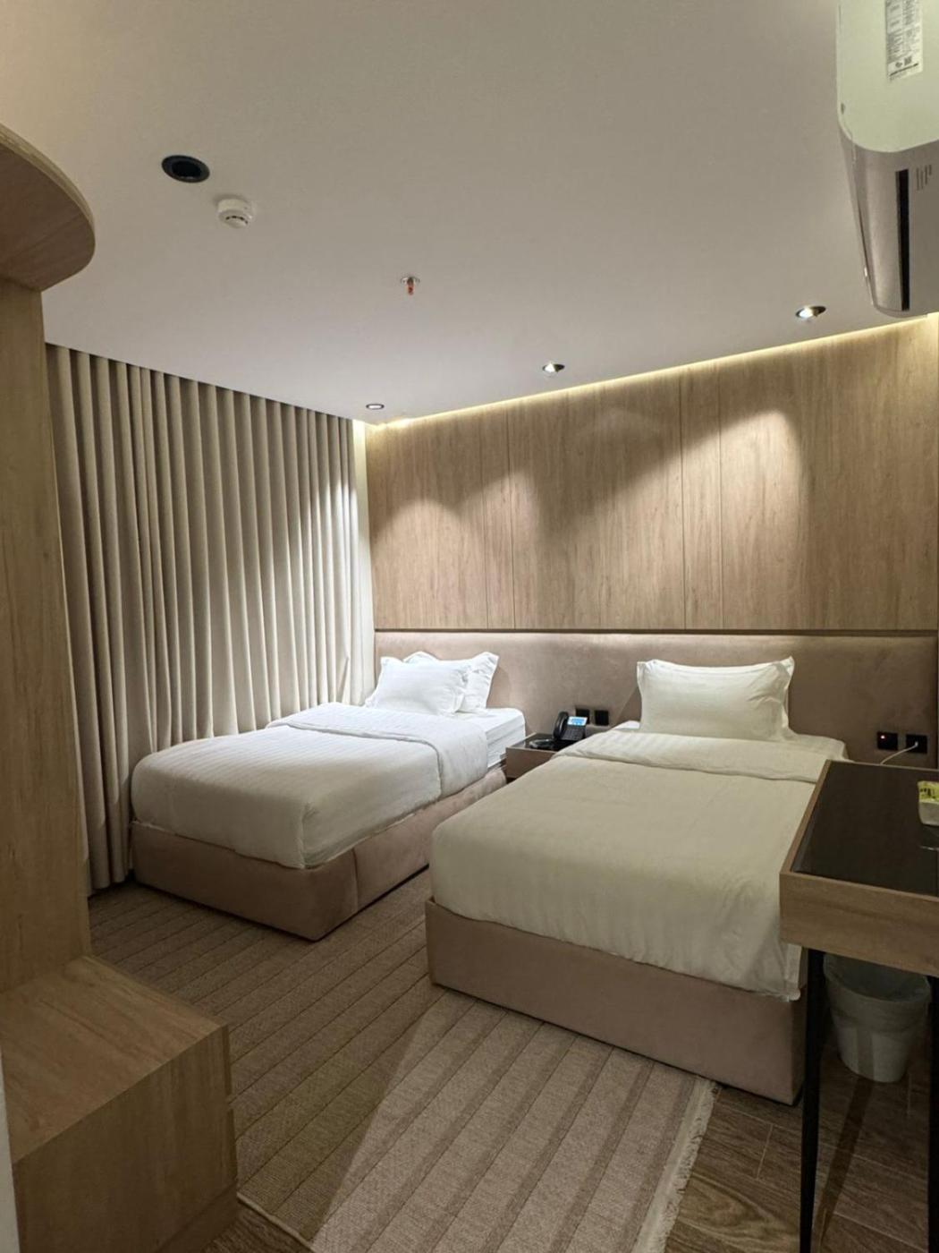 One-Bedroom Premium Apartment. This spacious apartment comes with 1 living room, 1 separate bedroom and 2 bathrooms with a walk-in shower and free toiletries. Guests can make meals in the kitchenette that features a refrigerator, kitchenware and a microwave. The air-conditioned apartment features a flat-screen TV, a washing machine, a tea and coffee maker, a dining area as well as city views. The unit has 2 beds. ;