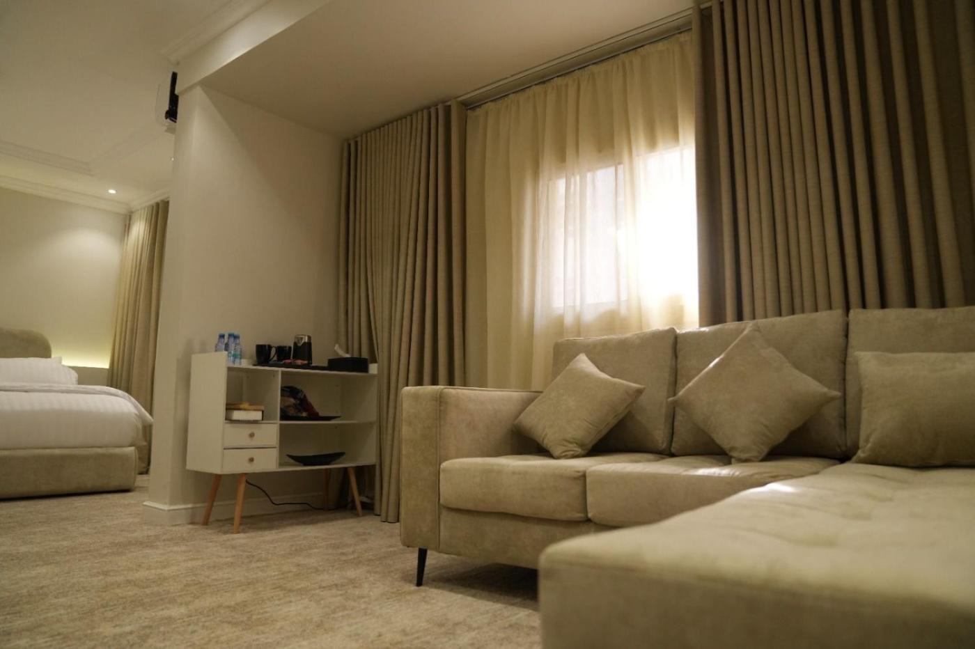 Suite. Featuring a private entrance, this air-conditioned suite consists of 1 living room, 1 separate bedroom and 1 bathroom with a bath or a shower and a bidet. The suite features carpeted floors, a seating area with a flat-screen TV, soundproof walls, a minibar, as well as a sofa. The unit offers 2 beds.
