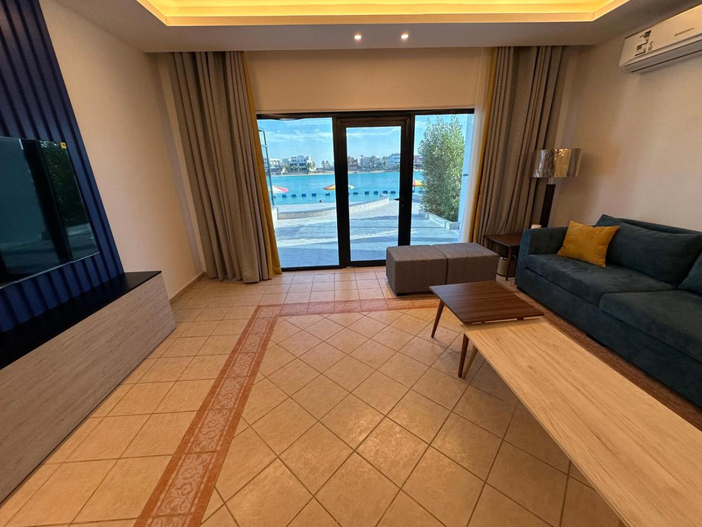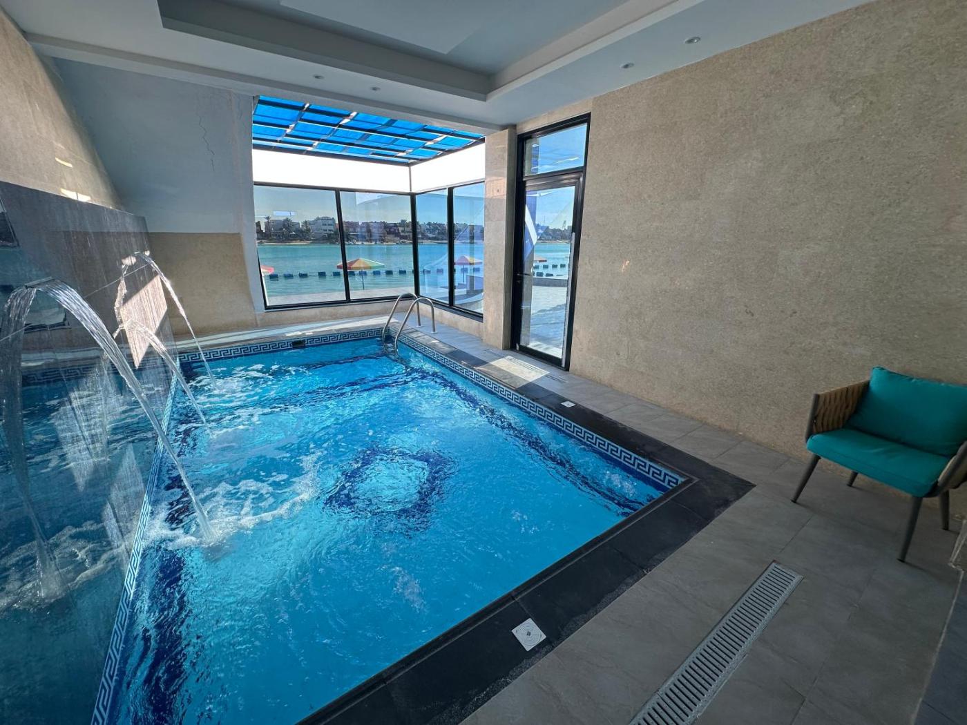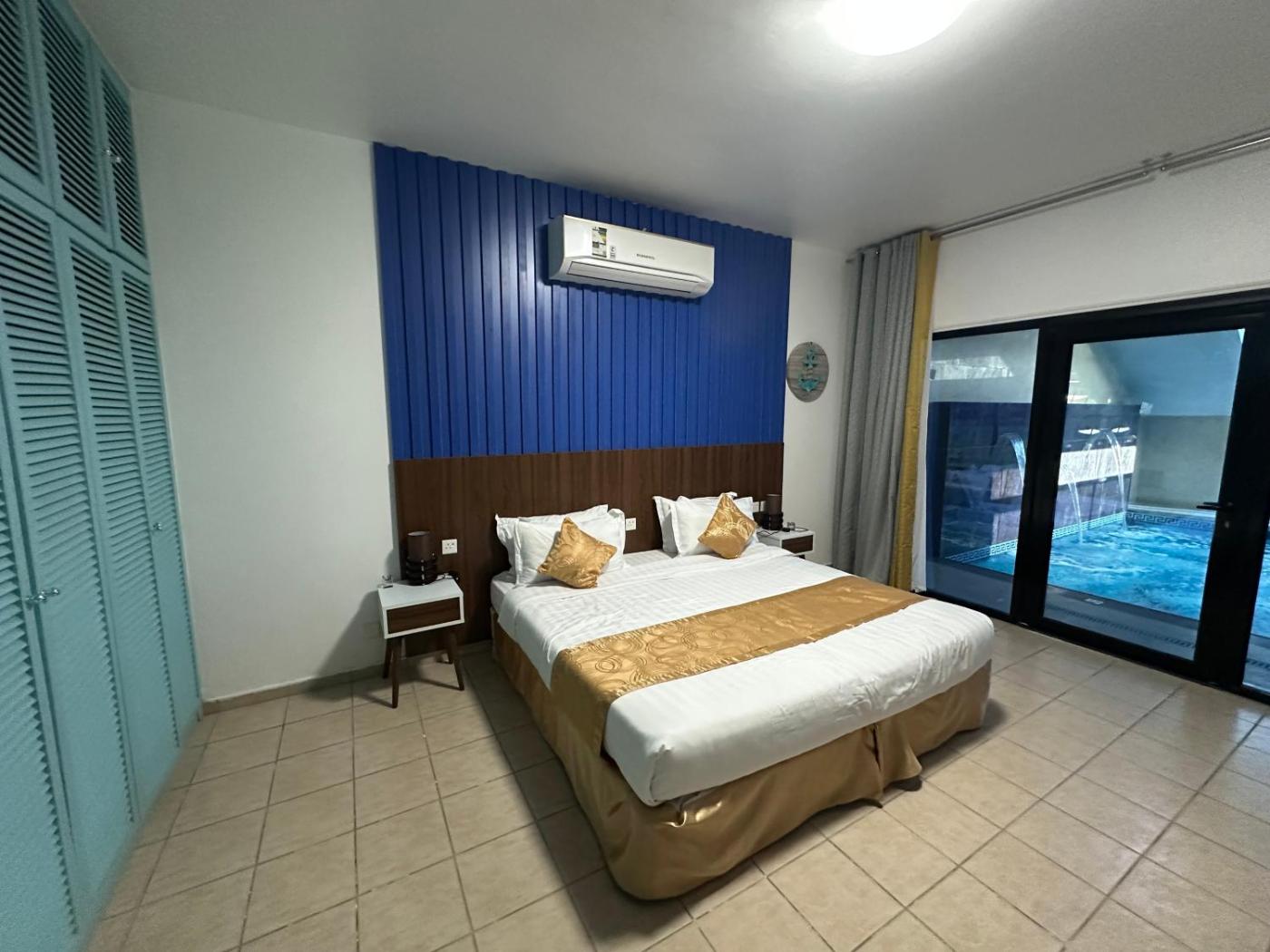 Boasting private pool, للعائلات - Blue شاليهات ison the beachfront in Durat Alarous. Situated 41 km from King Abdullah Sport City Stadium, the property features a private beach area and free private parking. The villa offers an indoor pool and a 24-hour front desk.