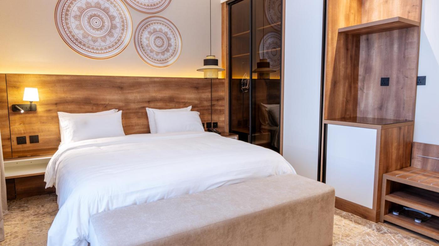 Two-Bedroom Suite. This spacious suite features 1 living room, 2 separate bedrooms and 1 bathroom with a walk-in shower and free toiletries. In the well-equipped kitchen, guests will find a stovetop, a refrigerator, kitchenware and a microwave. The air-conditioned suite features a flat-screen TV with cable channels, soundproof walls, a minibar, a seating area as well as city views. The unit has 3 beds.