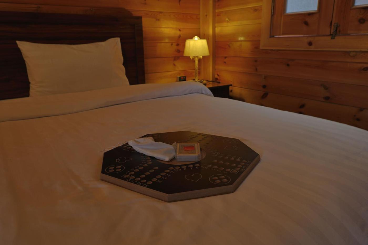 Two-Bedroom Chalet. This chalet features a pool with a view. This spacious chalet comprises 1 living room, 2 separate bedrooms and 2 bathrooms with a walk-in shower and free toiletries. The chalets kitchenette, which features kitchenware, is available for cooking and storing food. The air-conditioned chalet provides a flat-screen TV with satellite channels, a tea and coffee maker, a seating area, a sofa as well as pool views. The unit offers 3 beds. ;
