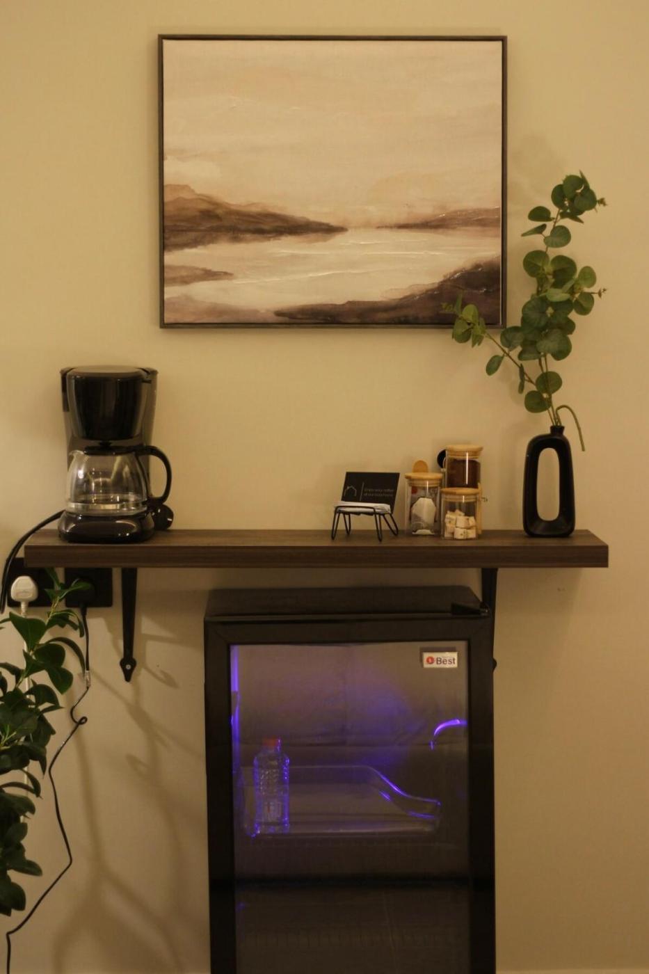 One-Bedroom Apartment. Guests can make meals in the kitchen that features a stovetop, a refrigerator, kitchenware and a microwave. The apartment has carpeted floors, a seating area with a flat-screen TV with streaming services, air conditioning, soundproof walls, as well as a tea and coffee maker. The unit has 2 beds.