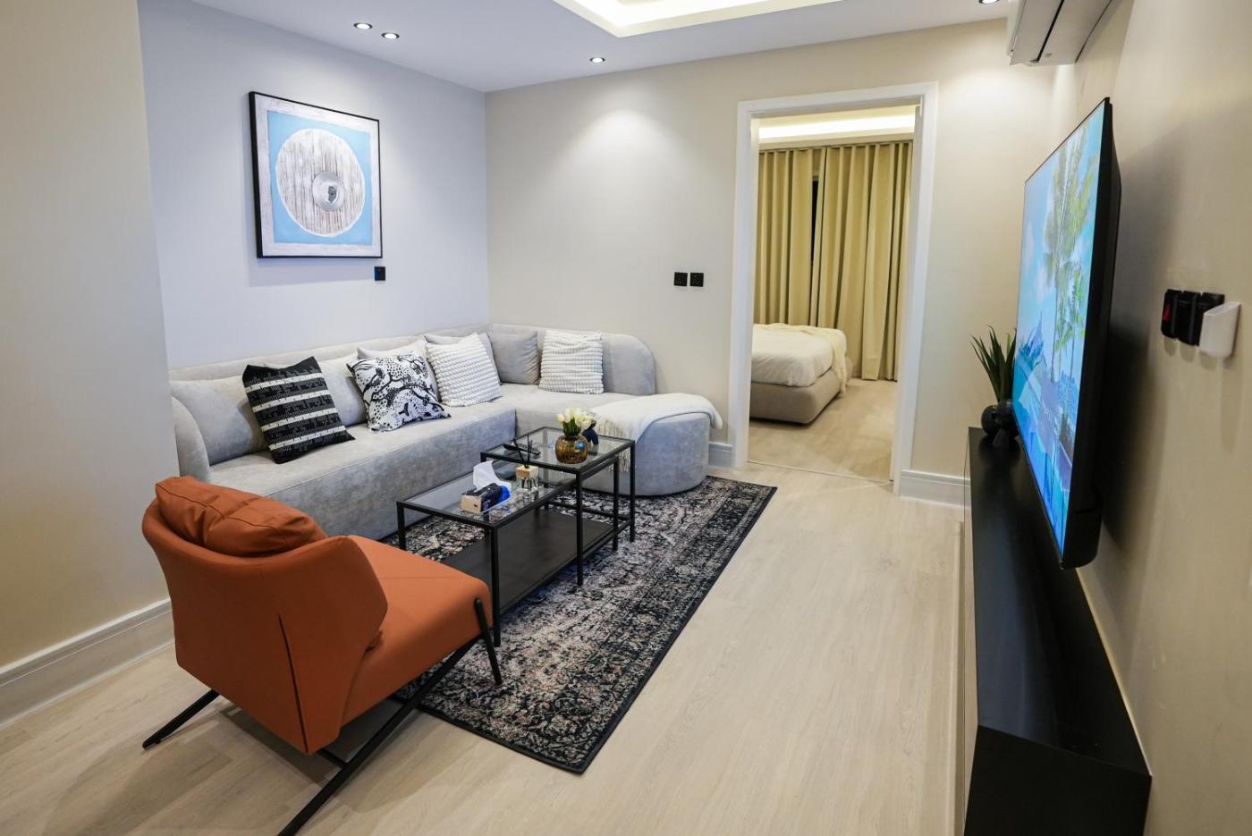 One-Bedroom Apartment. The air-conditioned apartment features 1 bedroom, 1 bathroom and a kitchen. The apartments kitchen is available for cooking and storing food. This apartment provides a flat-screen TV. The unit offers 1 bed. ;