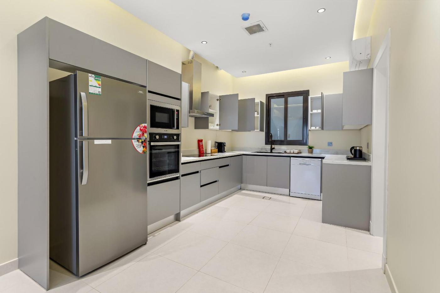 Three-Bedroom Apartment. The spacious apartment features 3 bedrooms and 3 bathrooms with a bath and bathrobes. The fully equipped kitchen has a refrigerator, a dishwasher, kitchenware and an oven. The air-conditioned apartment offers a TV, a washing machine, a tea and coffee maker and a dining area. The unit offers 4 beds.