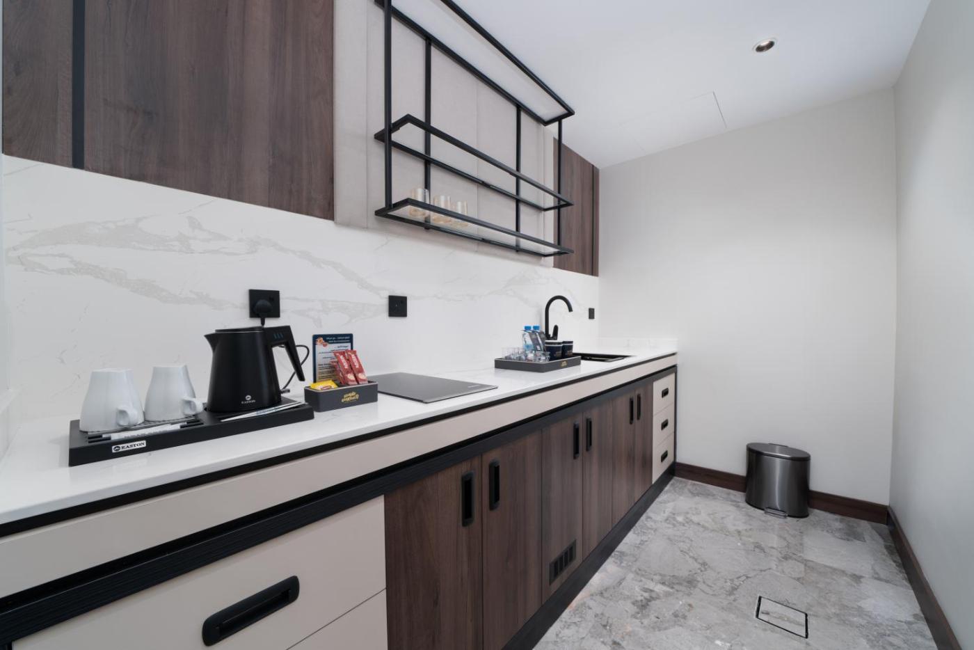 Executive Suite. The air-conditioned suite features 1 bedroom and 1 bathroom with a walk-in shower and a bath. Meals can be prepared in the kitchen, which is equipped with a stovetop, a refrigerator, kitchenware and a tea and coffee maker. This wheelchair accessible suite has soundproof walls, a seating area with a flat-screen TV and a toilet with grab rails. The unit offers 1 bed. ;