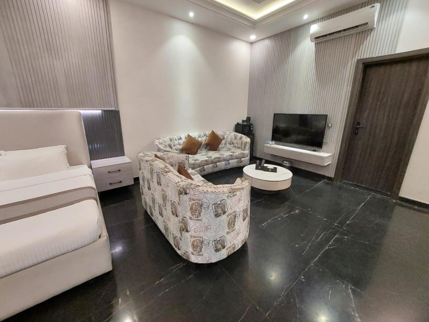 One-Bedroom Suite. Boasting a private entrance, this air-conditioned suite features 1 living room, 1 separate bedroom and 1 bathroom with a shower and a bidet. The suite features a flat-screen TV with satellite channels, Smartphone, a tea and coffee maker, a seating area as well as city views. The unit has 2 beds. ;