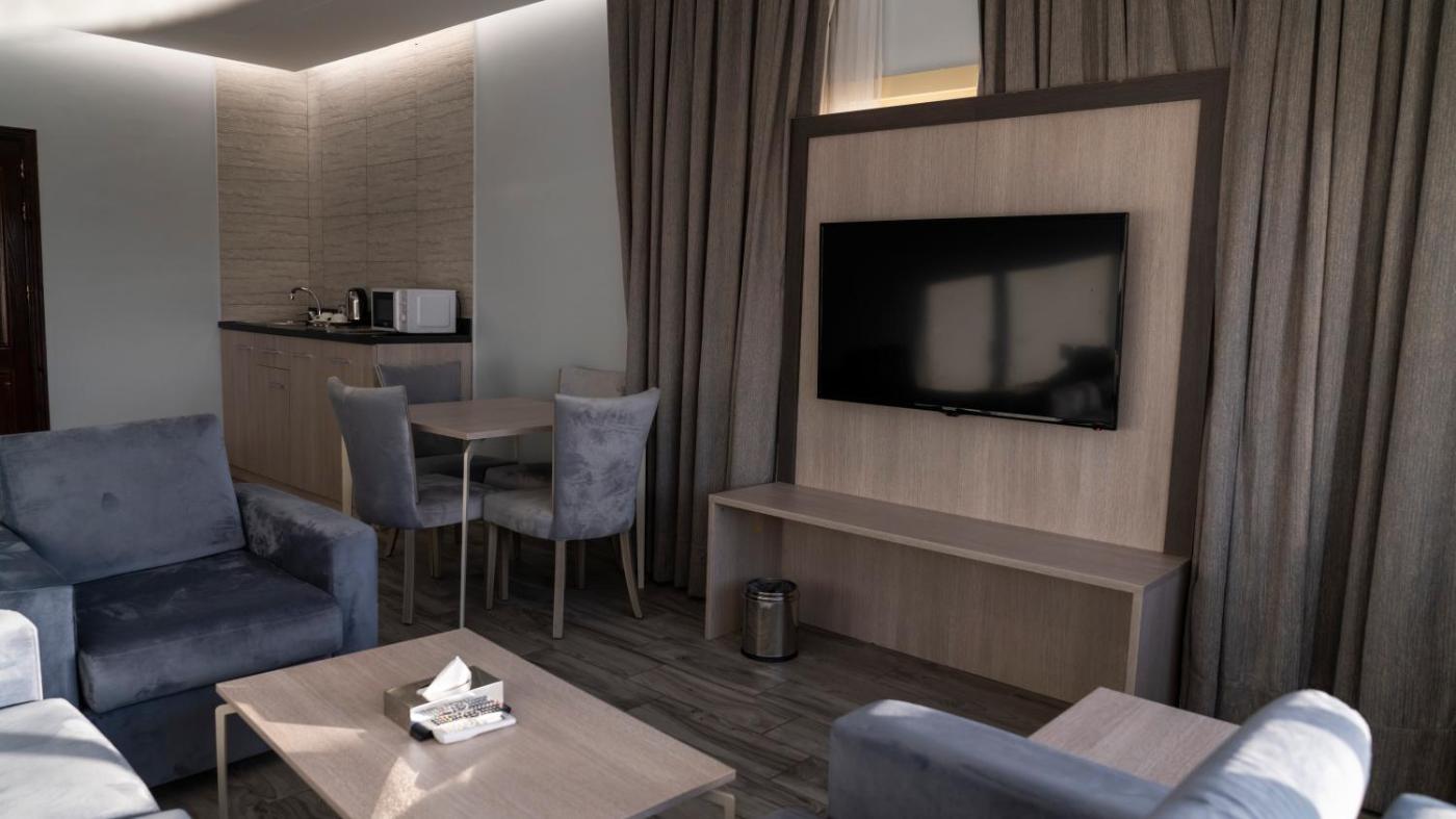 One-Bedroom Suite. This spacious suite consists of 1 living room, 1 separate bedroom and 1 bathroom with a shower and a bidet. The kitchenette is equipped with a stovetop, a refrigerator and a microwave. This suite is air-conditioned and features a seating area with a flat-screen TV, a wardrobe, an electric kettle, a sofa, as well as a carpeted floor. The unit offers 1 bed.