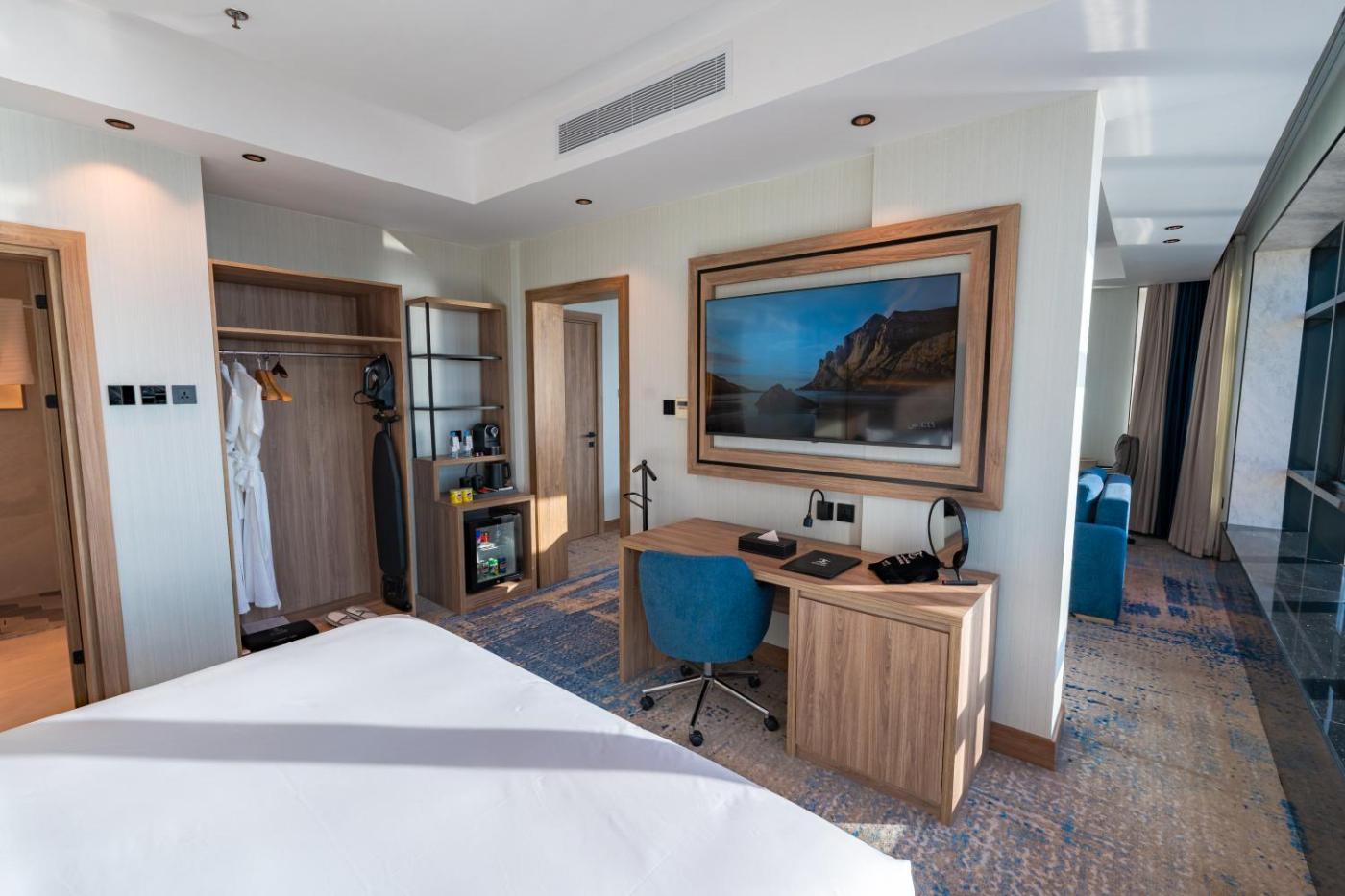 Deluxe Suite with Sea View. Boasting a private entrance, this air-conditioned suite comes with 1 living room, 1 separate bedroom and 2 bathrooms with a walk-in shower and a bidet. The spacious suite features a flat-screen TV, soundproof walls, a minibar, a tea and coffee maker as well as sea views. The unit has 2 beds. ;